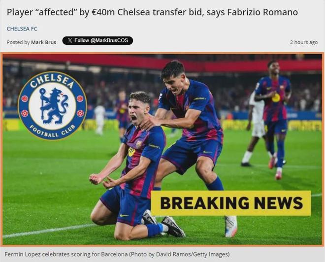 罗马诺在YouTube频道中表示,尽管切尔西今夏4000万欧元的报价没能说服巴萨出售费尔明,并且这名球员也确认他希望留队,但费尔明当时其实受到了传闻的影响。