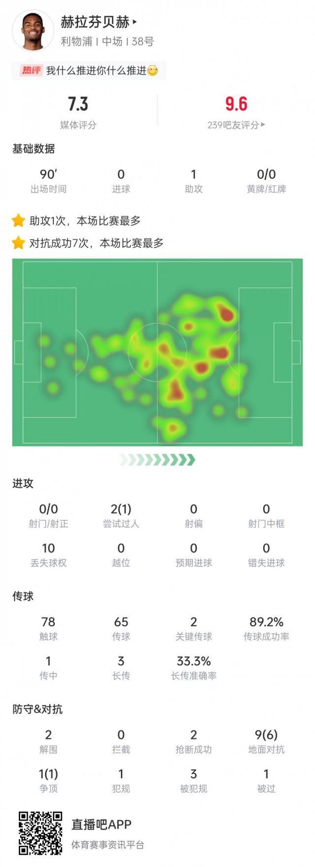 此役赫拉芬贝赫为利物浦踢满全场,并助攻萨拉赫破门,他当选本场比赛利物浦队内最佳球员。
