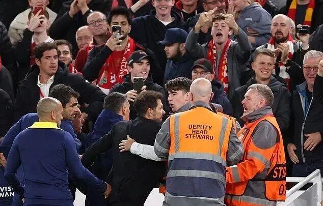 这位长期在马竞执教的主帅,原本目睹球队从0-2落后到2-2追平的不懈努力。但在最后时刻,这一切都被利物浦队长范戴克的头球粉碎了。当安菲尔德陷入疯狂时,西蒙尼却似乎被身后看台球迷激怒,他与靠近场边的球迷发生了冲突。