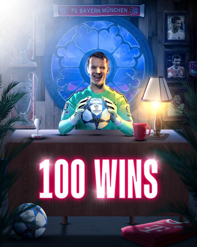 借此,诺伊尔成为欧冠历史上第4位完成100场胜利的球员。