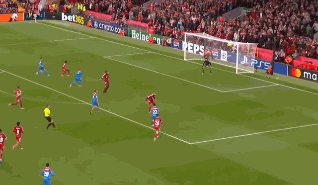 比赛最后时刻,萨拉赫传中,门前无人盯防的埃基蒂克将球打高。
