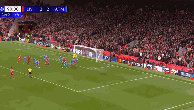 伤停补时第2分钟,索博斯洛伊开出角球,范戴克点球点附近高高跃起头球破门。利物浦完成绝杀。进球后,西蒙尼因为对裁判表示不满而被直接红牌罚出场外。