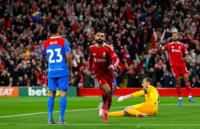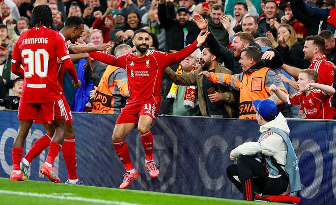 原本,利物浦的开局顺风顺水,开场只有4分钟,萨拉赫的任意球,被罗伯逊碰进球门,利物浦早早领先。