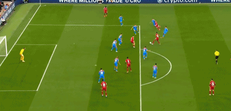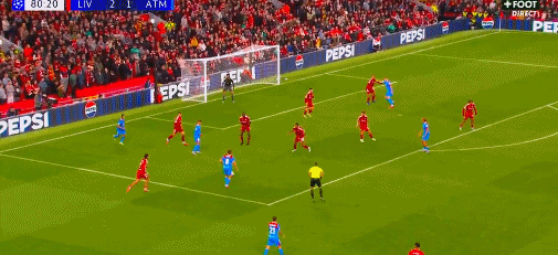 伤停补时阶段,马竞右路踢出流畅配合,拉斯帕多里横敲,略伦特跟上捅射,打穿科纳特的小门,阿利松扑救不及,马竞扳回一球,1-2!