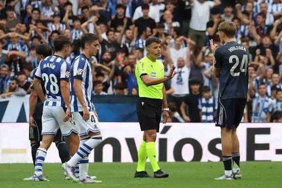 皇家马德里2比1客胜皇家社会第32分钟,怀森拉拽犯规,主裁希尔·曼萨诺认定其为最后一名防守球员,故派红牌驱逐。西裁委会复盘,认为针对怀森是否作为最后一人,且是否破坏明显进球机会这两点,均存在多种解读空间,曼萨诺更宜出示黄牌,而非下达红牌极刑。