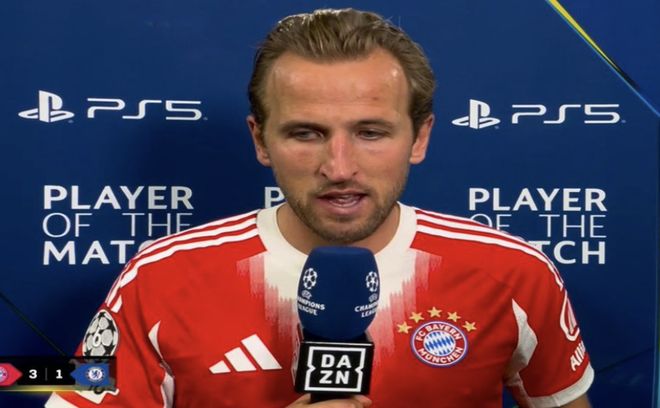 9月18日欧冠日报讯 欧冠联赛阶段第一轮,拜仁慕尼黑在主场以3-1的比分战胜切尔西。凯恩在赛后接受了DAZN的采访。