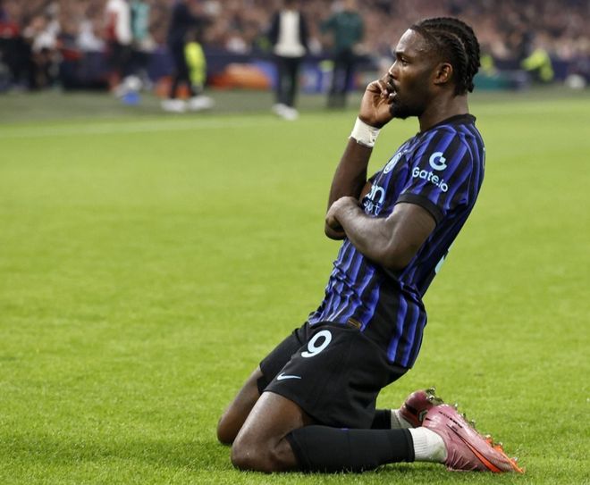 下半场比赛国际米兰带球入场,而且还是同样的套路,恰尔汗奥卢右侧角球开出,小图拉姆禁区内高高跃起,力压防守球员头球破门,帮助蓝黑军团将领先的优势扩大到了2球,牢牢掌握住了获胜的主动权,阿贾克斯自从19年以来首次遭遇单场2次角球丢分的情况。